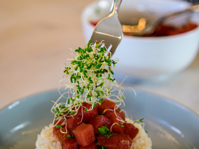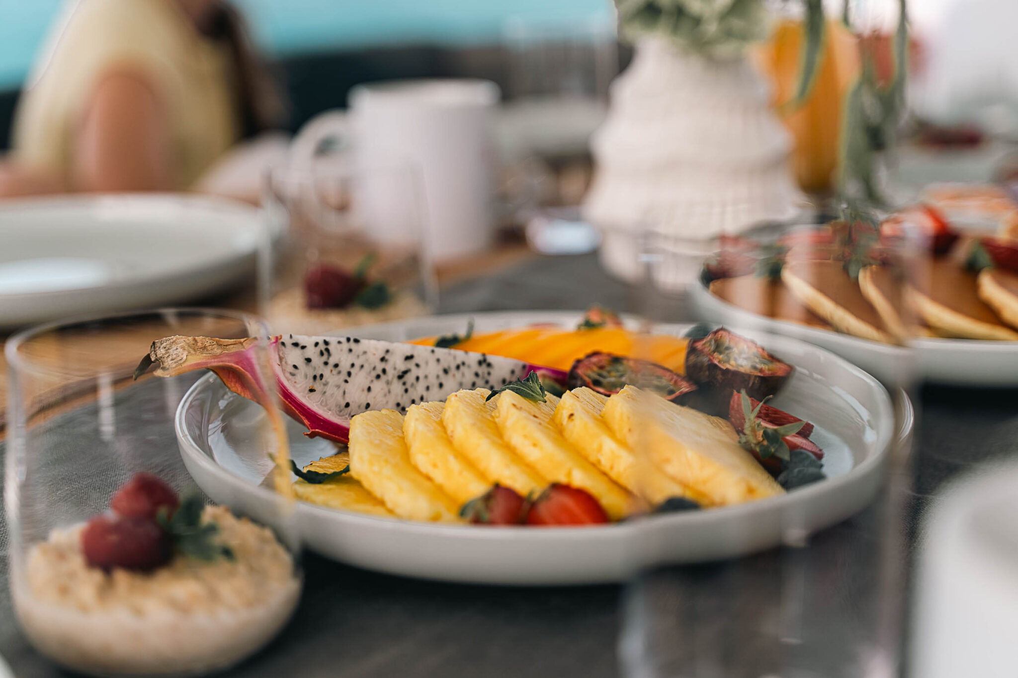 Break your fast on fruit platters, eggs, freshly baked bread and pastries, fruit juices, coffee, matcha lattes, and teas.
