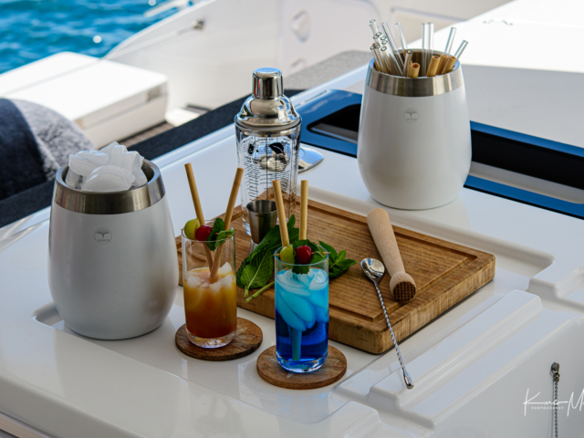 With a full bar onboard, we can also whip up some refreshing cocktails like a Mojito, Daiquiri, Margarita, Rum & Coke, and more.