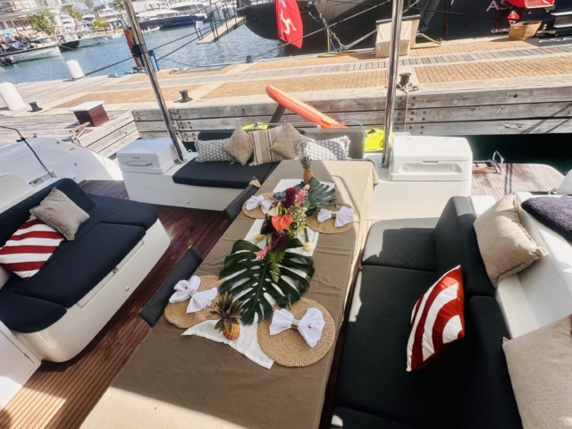 With 5+2 cabins, each lavishly furnished and equipped for the utmost comfort, we can adequately accommodate larger groups of friends and families. We’ve even turned both decks into the perfect holiday hangout spots, complete with sun loungers and a full bar.